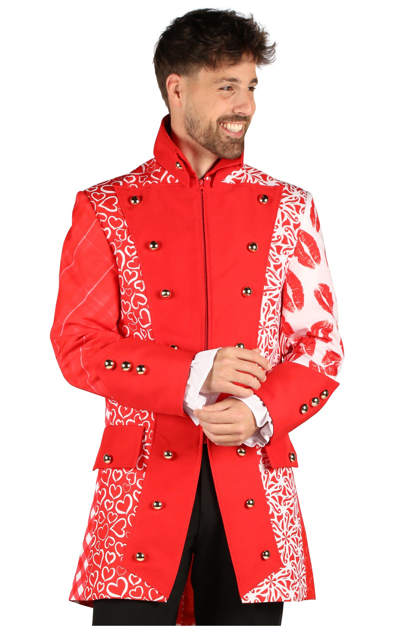 Prachtige carnavalsjas samengesteld uit diverse design stoffen.