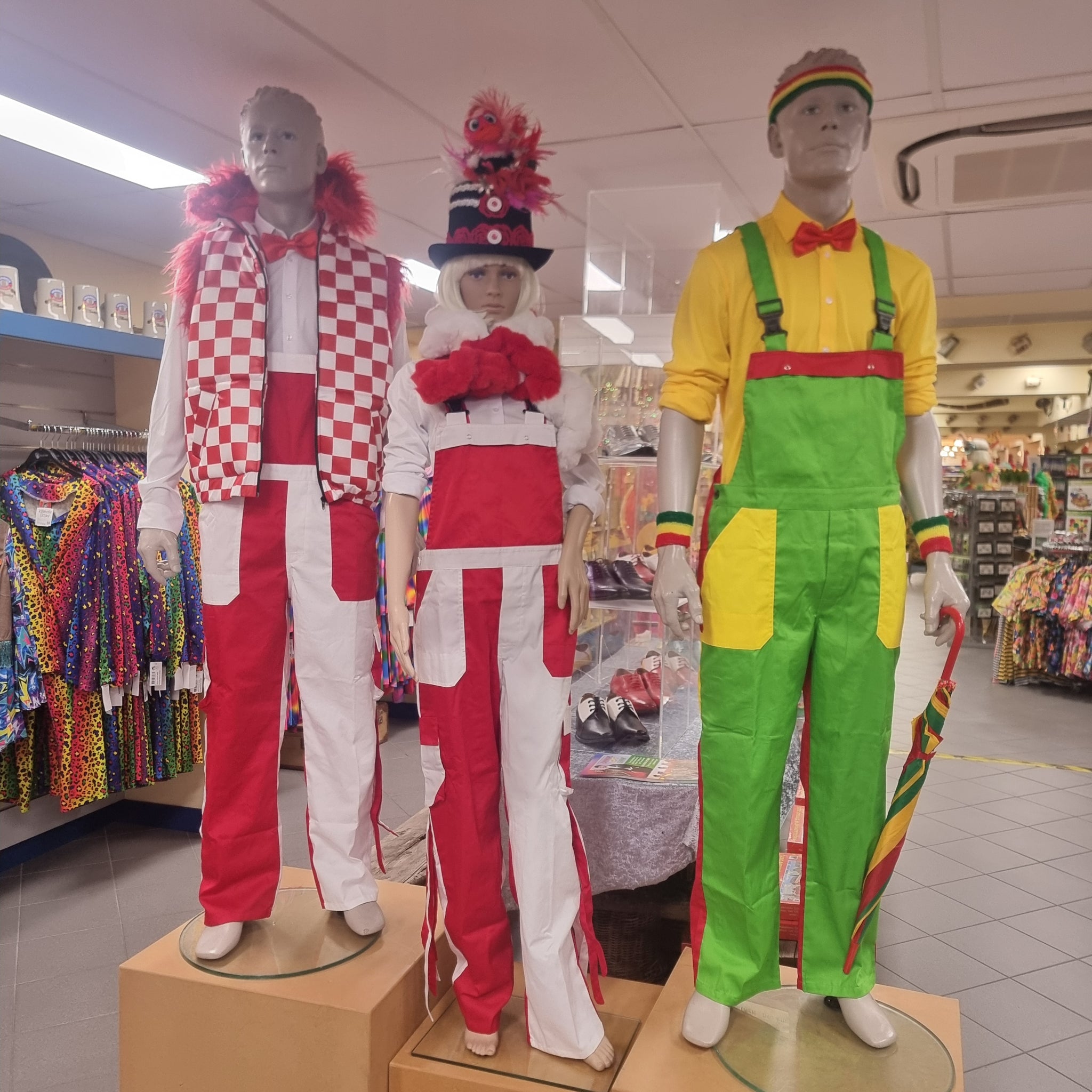 Kwalitatieve tuinbroek in de kleursamenstelling rood/wit